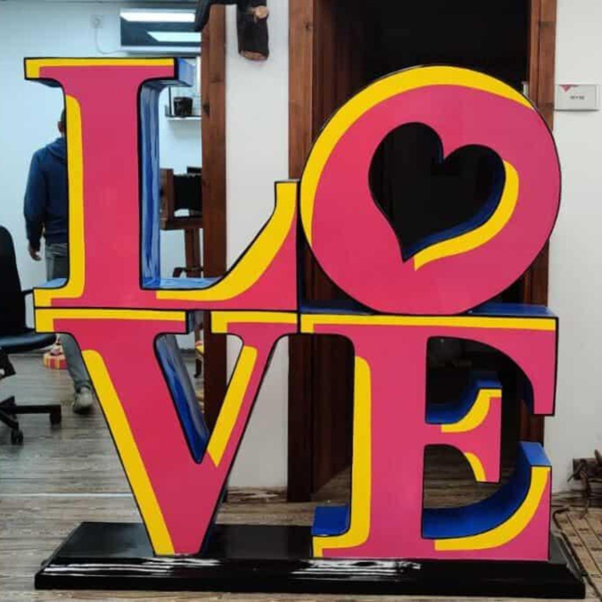 שלט של לאב פופ ארט עשוי מפיברגלס, מתאים לתנאי חוץ.