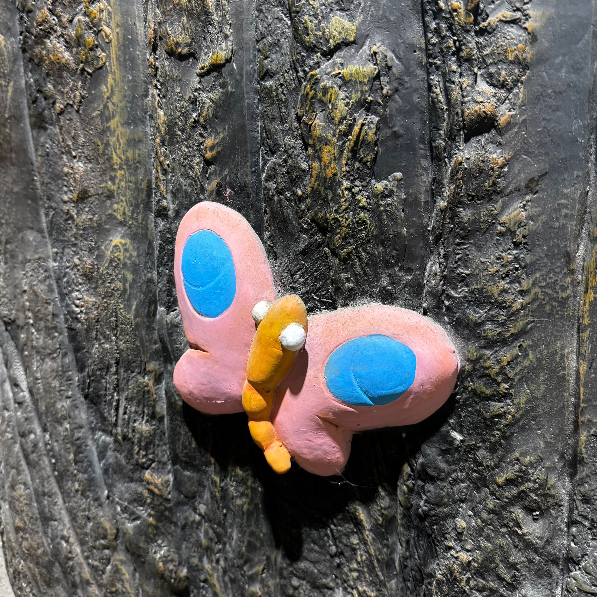 כיסא דמוי עץ עם ציפור עשוי מפיברגלס מתאים לתנאי חוץ.