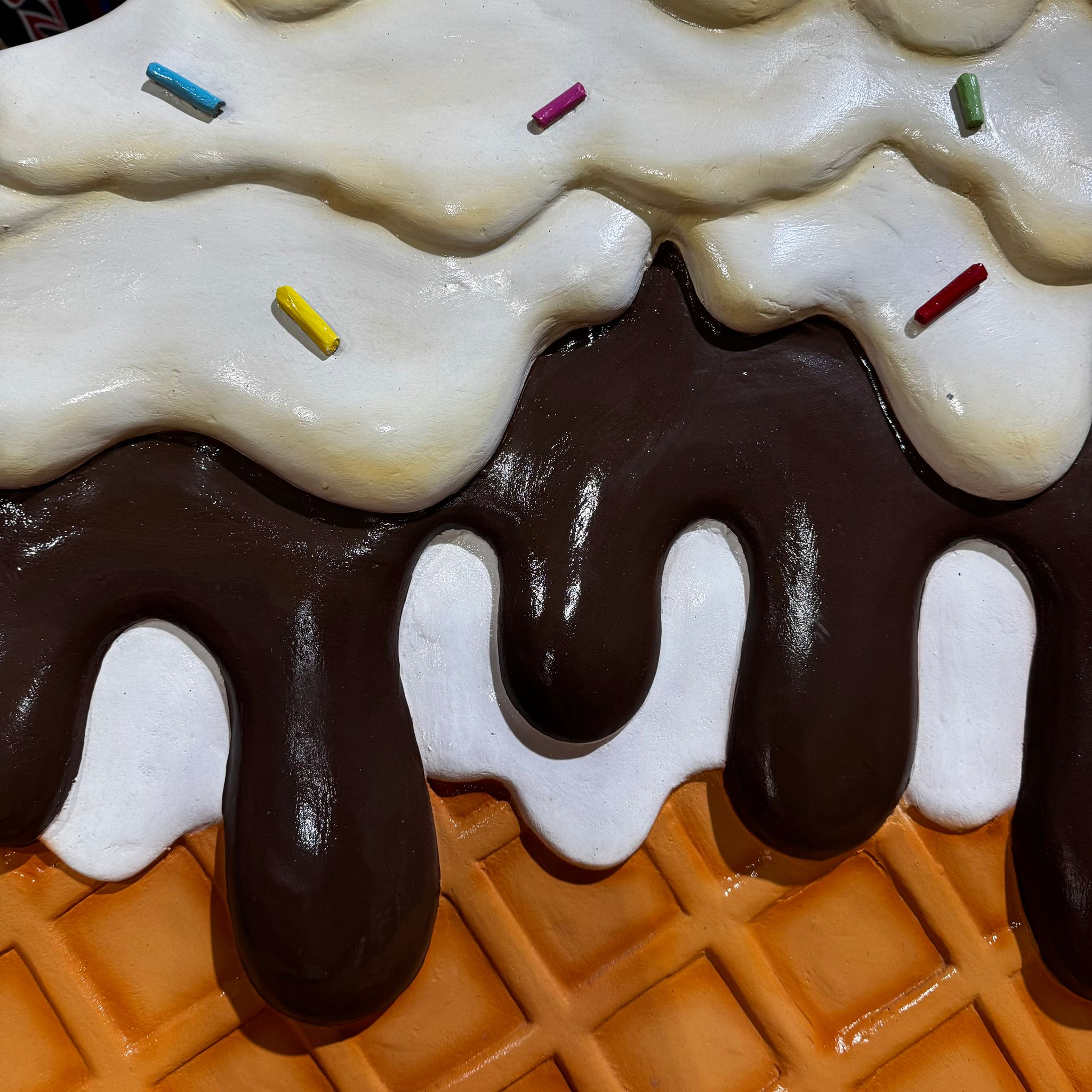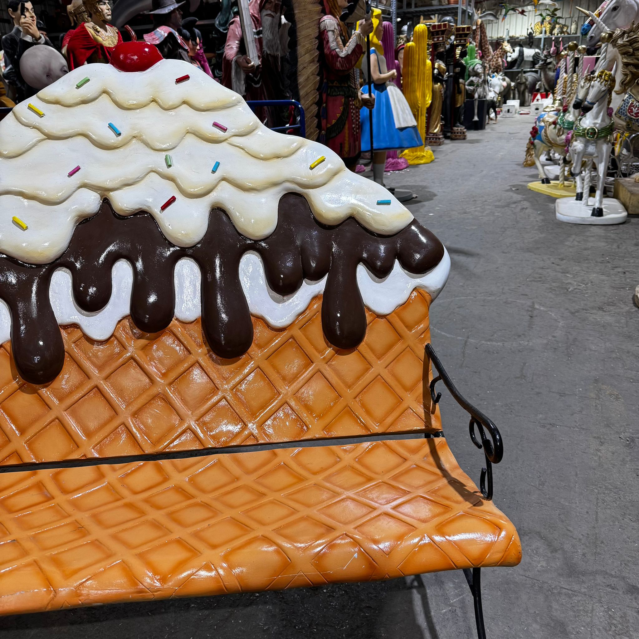 פסל של ספסל גלידה שוקולד עשוי מפיברגלס מתאים לתנאי חוץ.