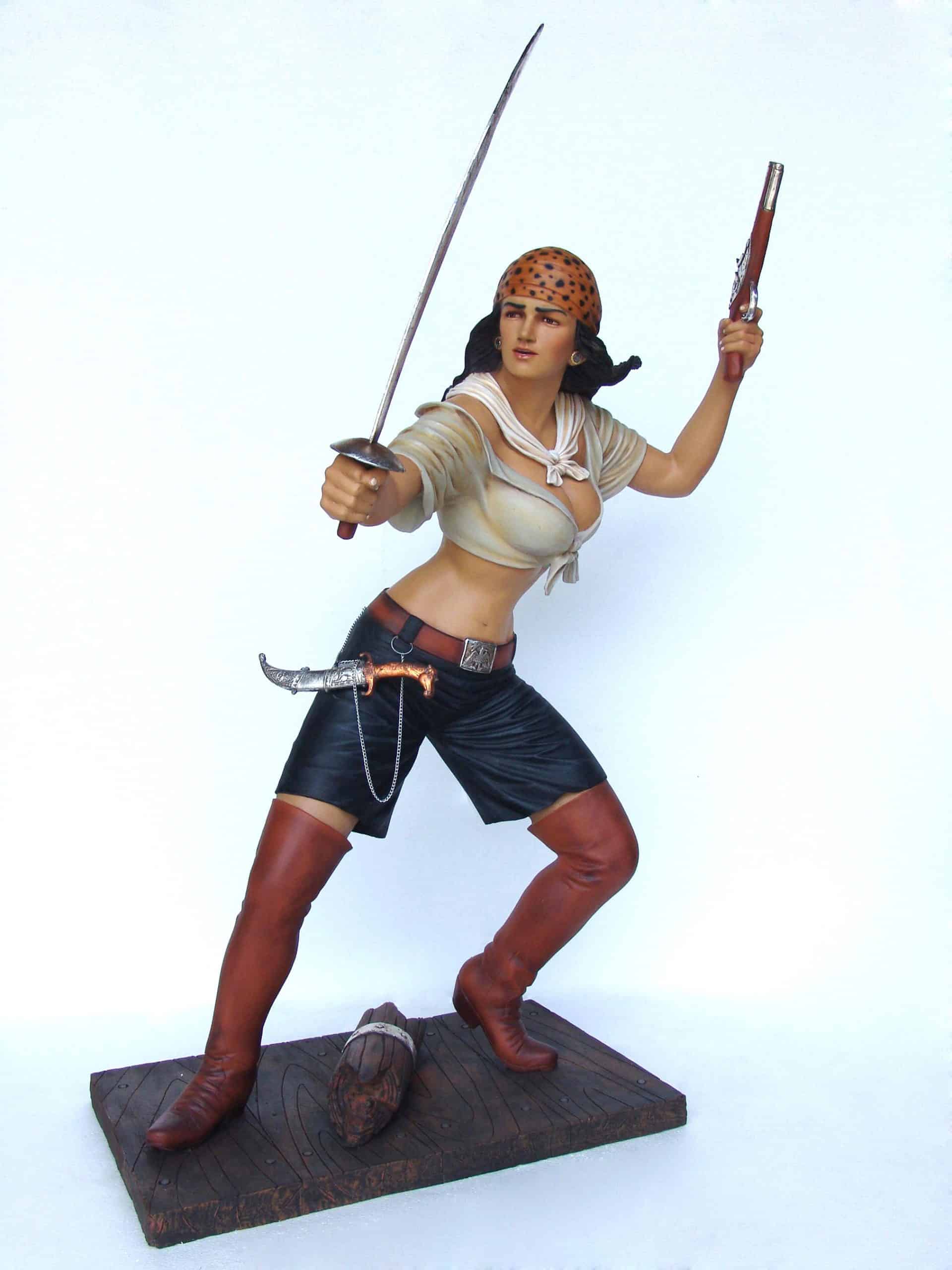פסל של פיראטית עם חרב עשוי מפיברגלס איכותי,ניתן להעמידו בתנאי חוץ.