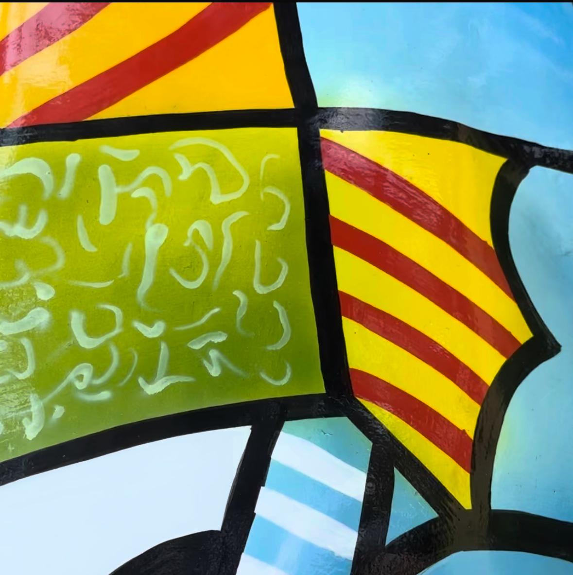 פסל של פרה בפופ ארט עשוי מפיברגלס ,מצויר בעבודת יד.