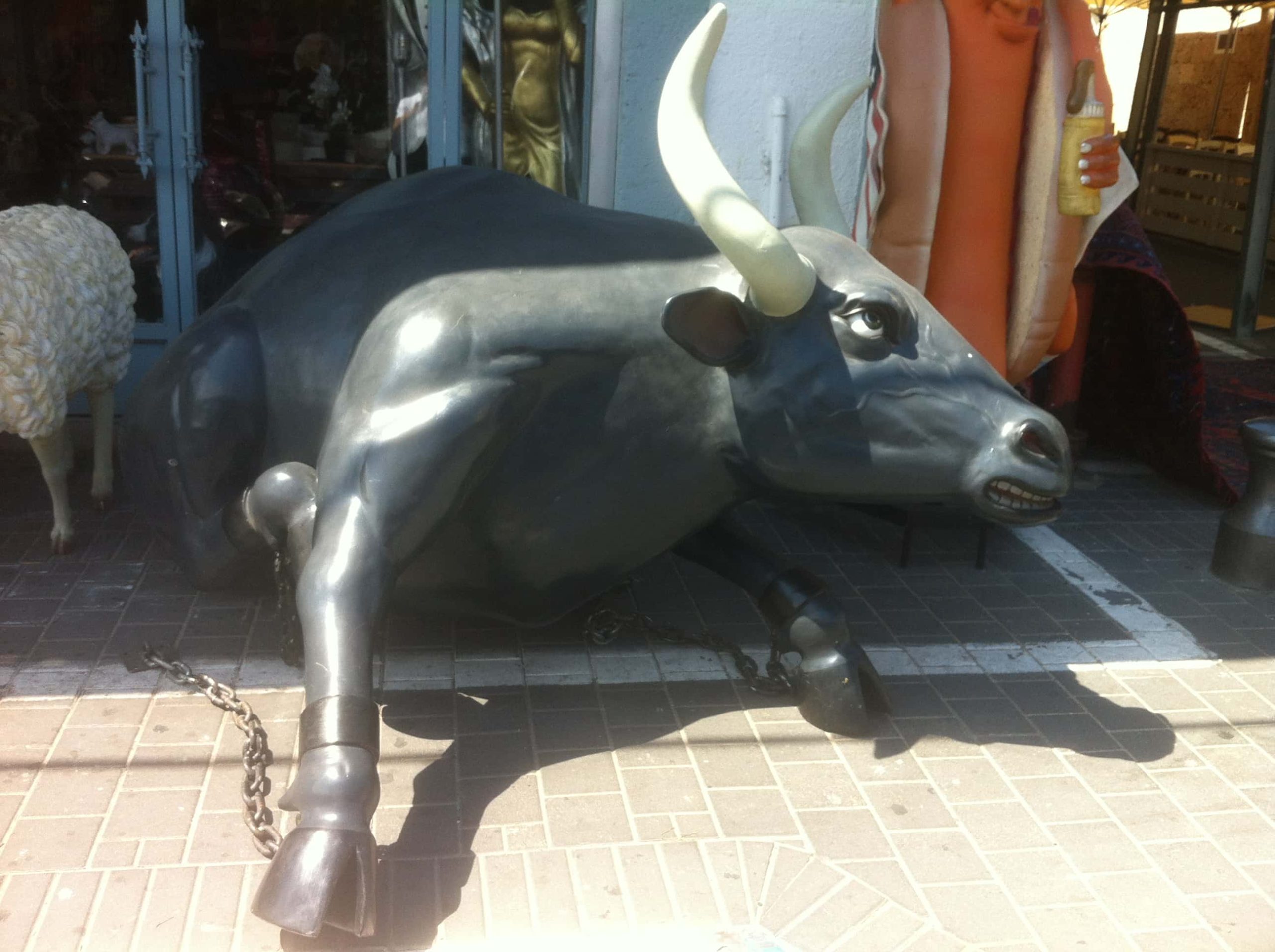 פסל של שור בשלשלאות עשוי מפיברגלס איכותי מתאים לתנאי חוץ,