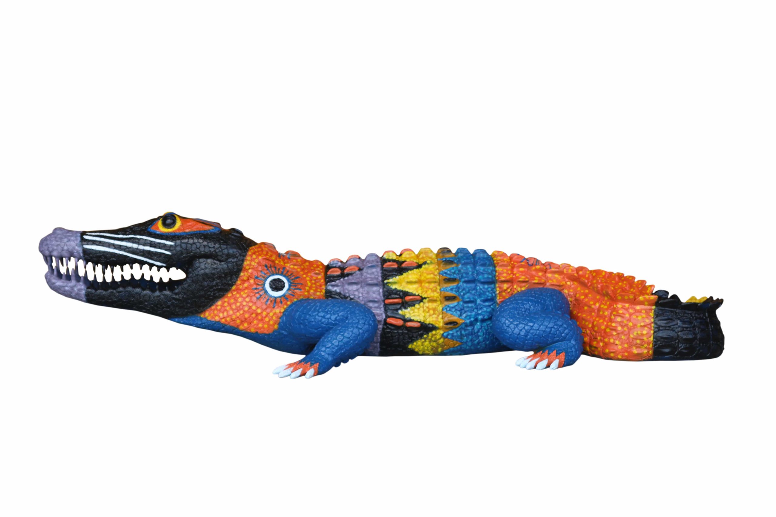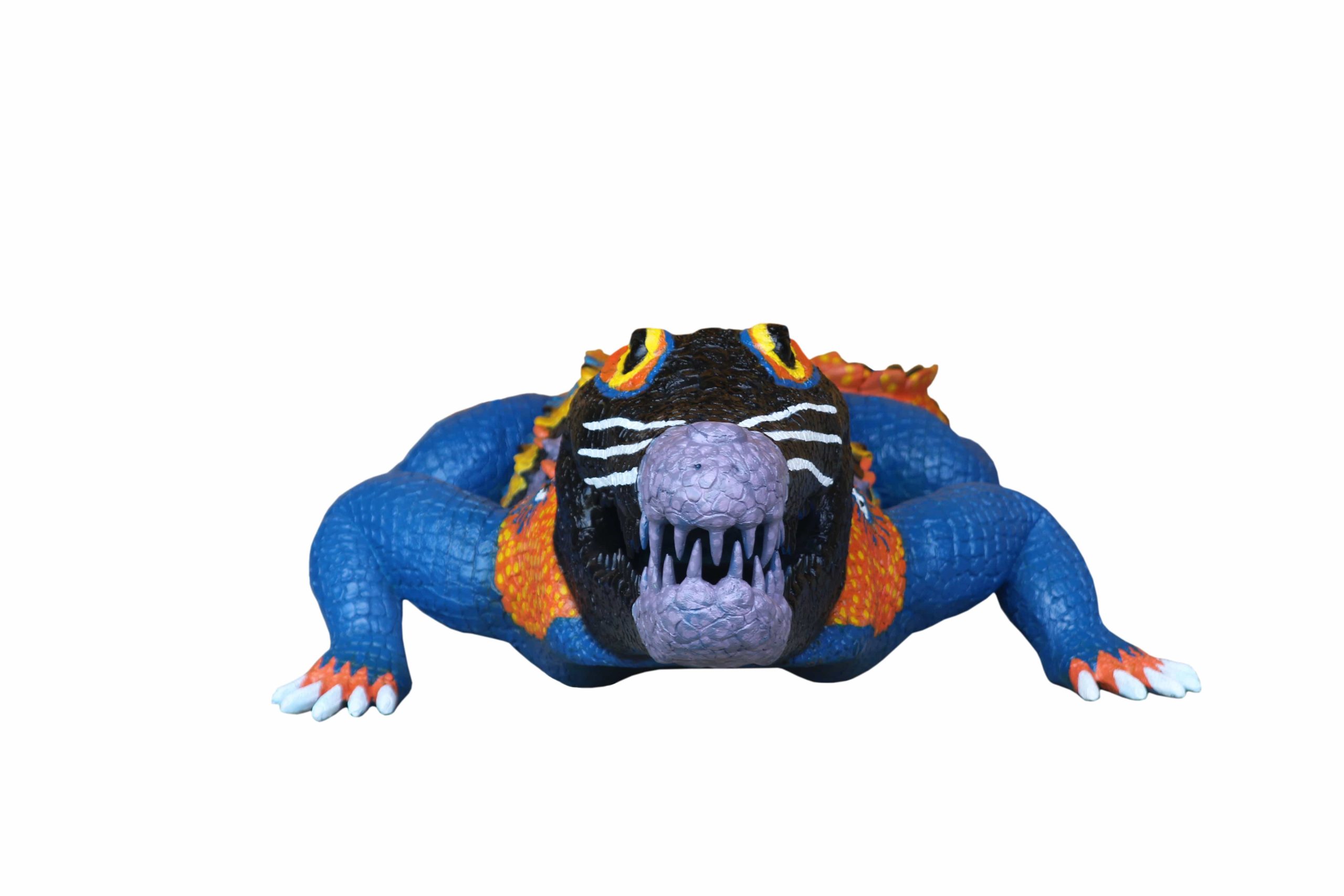 פסל של תנין בפופ ארט עשוי מפיברגלס, מתאים לתנאי חוץ.